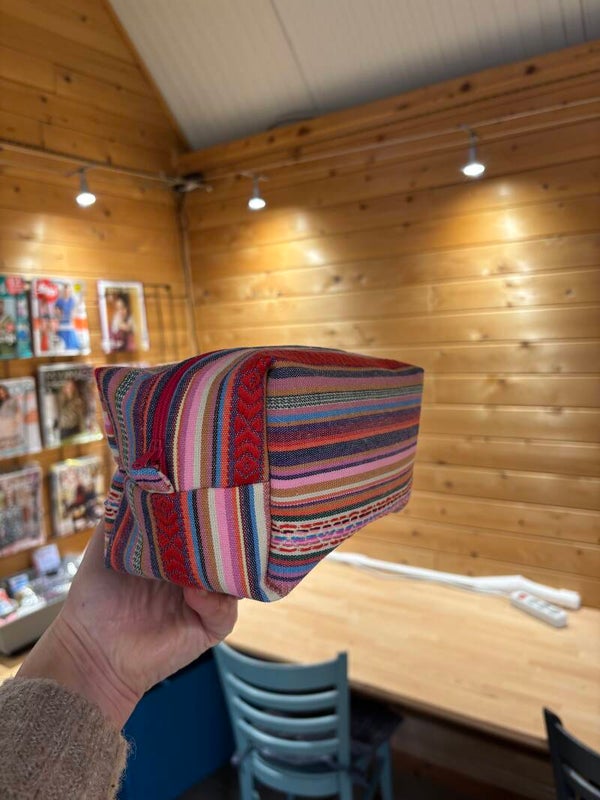 Er is een grote bak met stof met allerlei soorten dessins. Wil je hiervan gebruik maken dan kost dit 5 euro pp. Voor onderzetters, boekenleggers, knuffels, kussenhoes. let op dit gaat alleen om stof. Sommige projecten hebben bv nog versteviging nodig zoals een opbergmandje. Deze kan je apart aankopen.